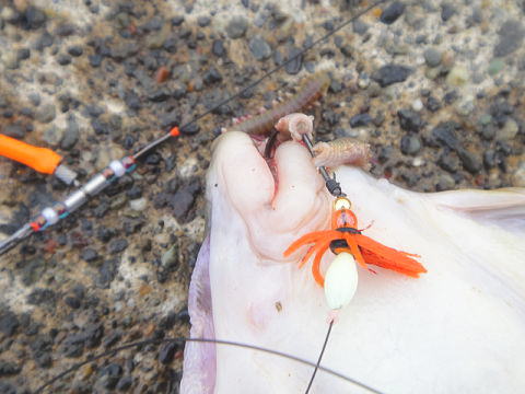 まず2日半の遠征において撃沈したマコガレイ合計19匹のうち13匹が「ルミックスダンサーV TSP」の付いた針に