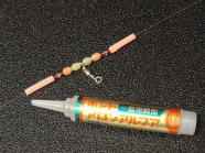 固定、その後瞬間接着剤で本固定するといった結び目を作らずエダス取り付け部ができちゃう便利アイテムもあったり