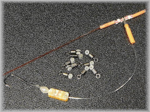 モトスを通す際、抵抗を和らげる為リング部にクッションを設けてある「船ヒラメ専用ローリングサルカン」、