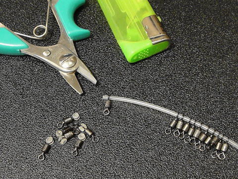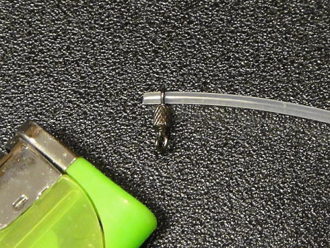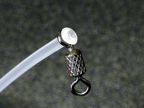 @ サルカンのリングに硬質パイプを通し約2〜3mm出して端をライターで炙る。
