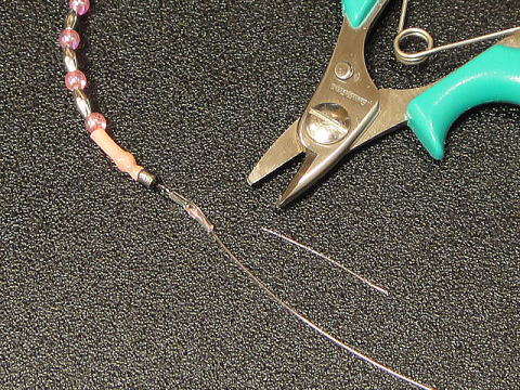 C ハリス先端部を引っ張りながらパイプを金具部へ被せて余りをカット。