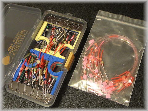 ※ 下のよ〜にあらかじめ大量のハリス&エダスを作っておけばもっと楽チン!