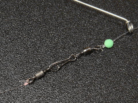 ● 道糸(力糸) → シモリ玉 → スナップ付スイベル → モトス or ハリス (仕掛け)