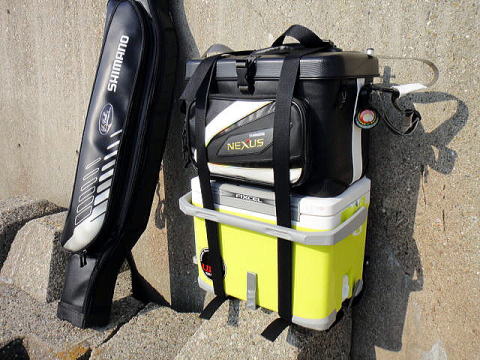 戦場でもなんせ毎回大荷物のメインとなるクーラーと磯クールが背中にまとまってしまってますので手で持つのは