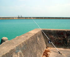 施設が集まる中央部から港を守るかのように突き出る防波堤(上の写真手前)と合計2本あり、投げ釣りに関しては