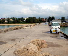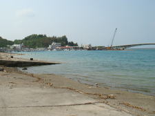 与勝半島の先端「藪地島」とを結ぶ大橋の袂に広がるのが「屋慶名漁港」。