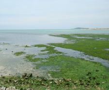 「藪地島」との水道となってはいるが、水深は最深部でも5mあるかないかの完全な砂泥底で、たま〜に岩などに