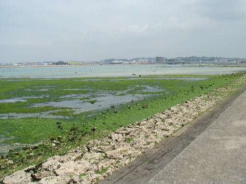 干潮時に完全に干上がって剥き出しになる部分が多いので、地元の方々は干上がった部分まで下りて釣ったりも