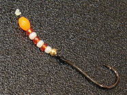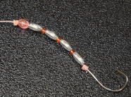 ● 蛍光オレンジシモリ玉5mm ×2 → ピーコック丸ビーズ小 → 針