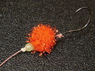 ● レッド毛バリ → (ゴールド丸ビーズ小 → 発光玉ハード2号 ×2)