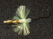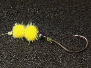 ● ゴールドナツメビーズS ×2 → 蛍光グリーン毛バリ →