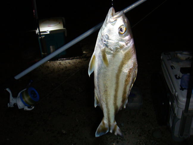 時々昼間にも釣れたりしますが投げ釣りでは夜戦で狙うのがほどんどです。白身のしっかりした身の魚で食味も